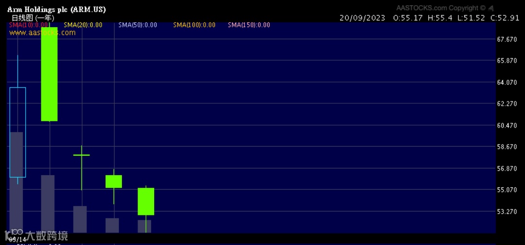 9月15日,美股迎来本年度最大IPO——芯片巨头ARM登陆纳斯达克,首日大涨近25%,市值达到679亿美元。以650亿美元估值和2022财年5.24亿美元净利润计算,ARM市盈率高达125倍。