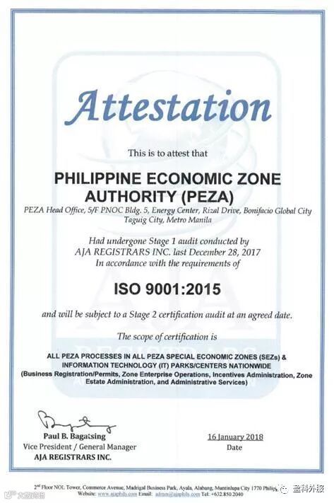 “在PEZA的领导下,菲律宾的投资环境出现了显著改善。最终结果——菲律宾自由区管委会是一个成功的监管改革的光辉例子,改善了该国的整体投资环境。”