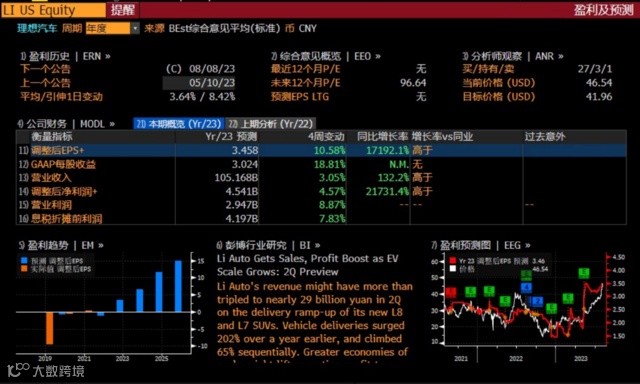 ◊ 另外,理想汽车将于周二公布财报。据彭博社调查,分析师预计,理想汽车2023财年1051.7亿元,同比增长132.2%,调整后净利润45.4亿元,同比增长21731.4%。