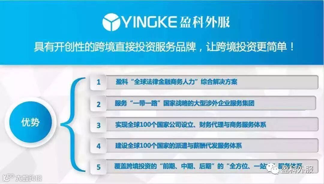 盈科外服,依托盈科全球体系的优质资源和广阔平台,为中国企业赴海外投资提供“投资咨询、调研评估、市场准入、公司设立、资金出境、投资架构、全球派遣、薪酬外包、跨境财税、离岸操作”等全方位、一站式服务。