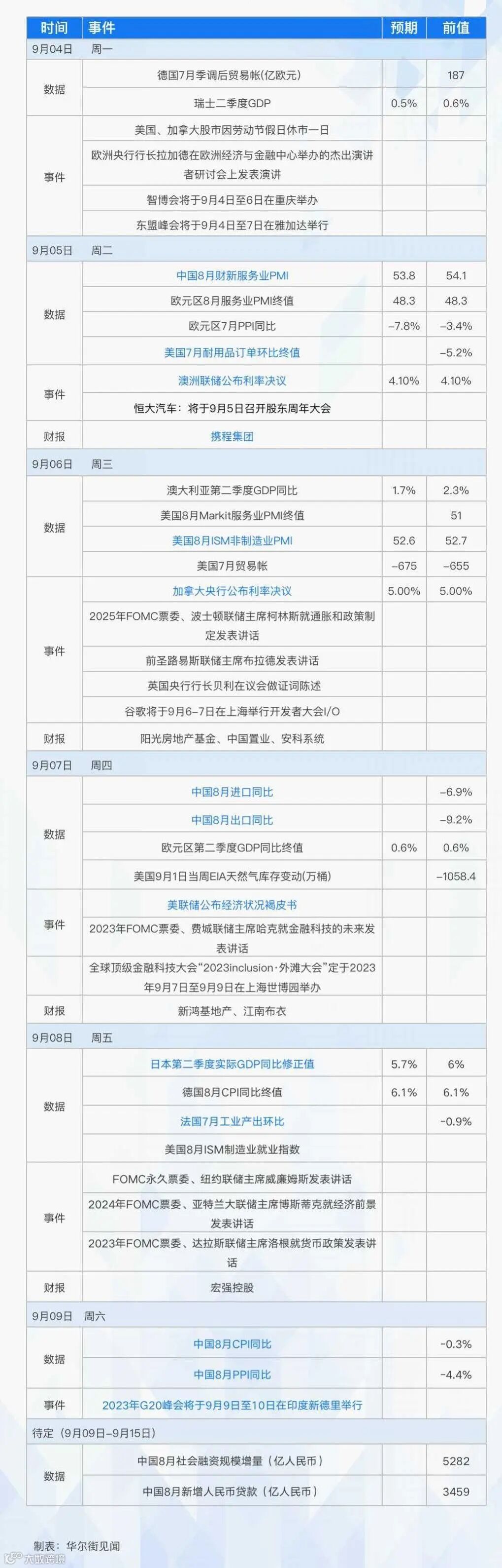 ◊ 9月5日周二,中国8月财新服务业PMI即将揭晓。