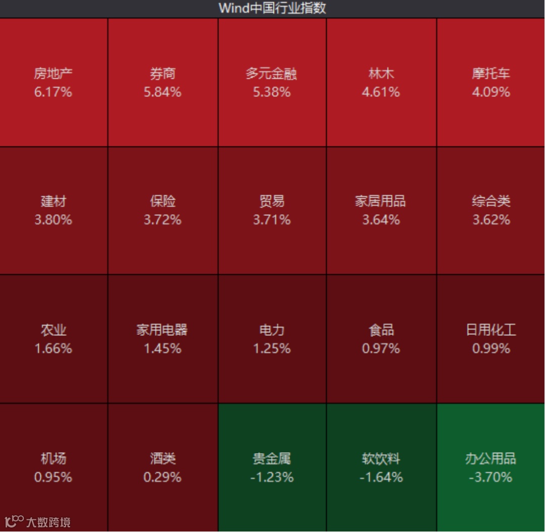 板块方面,券商板块几乎全线涨停,申万证券行业指数高开10.85%。多元金融、软件开发、保险、光伏设备板块均高开超7%。