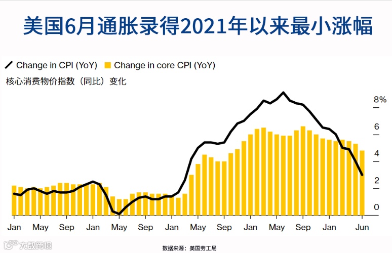 最新数据,6月美国CPI同比涨3%,为2021年3月以来最小增幅;PPI同比涨0.1%,创2020年8月以来新低。