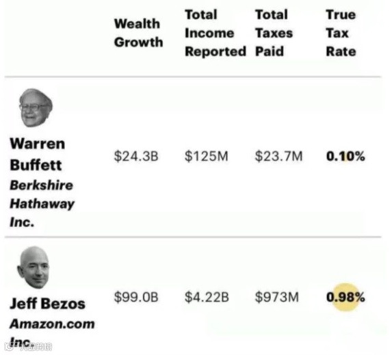 不过,也有人认为,支持派的富豪并不是真想多交税,他们只是想占领舆论高地,再背地里合法避税,比如,巴菲特多年来交税率仅为0.1%。