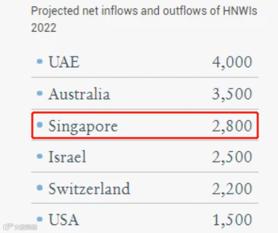 财富研究公司Henley&Partners一份报告指出,受国际局势影响,2022年大约有2800名资产净值达100万美元或以上的富翁迁移到新加坡,比疫情前2019年的1500人多出87%。