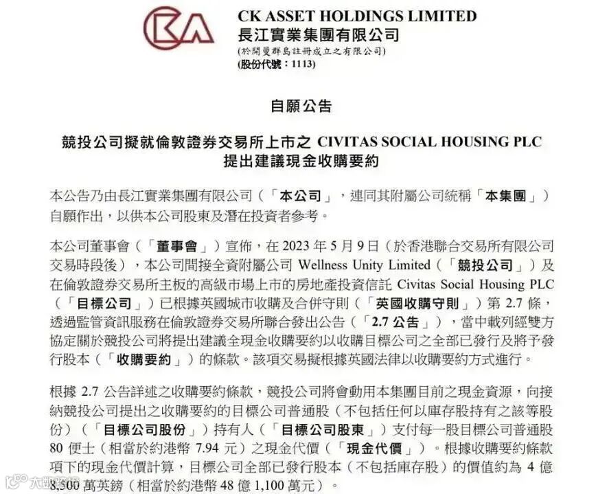 2023年5月16日,李嘉诚以每股53元,将私人持有的135.9万股长和股份,调动至家族信托基金Li Ka-Shing Unity Trustee Corporation及Li Ka-Shing Unity Trust corp。他私人持有的6295.3万股长实股份,也挪至此。