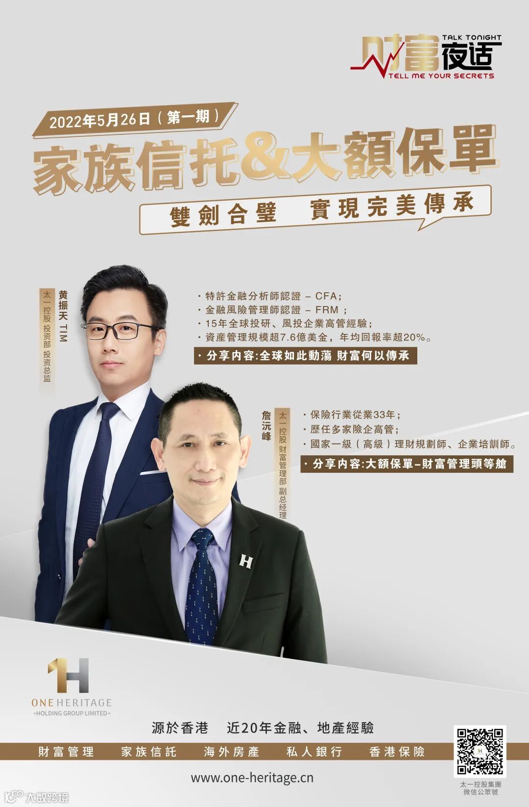 这是我们为进一步发挥集团资深财富管理团队的作用,同时更好地服务海内外高净值人群,而推出的财富专题直播节目,每周四晚19:00 - 20:30准时直播。