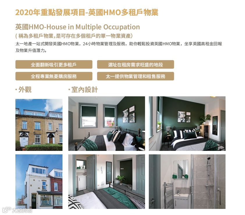 自2020年在伦敦证券交易所主板上市后,太一地产发展迎来了跨越式的发展,借独到的投资眼光,在英国成功开发了HMO项目、轻奢公寓、独栋别墅等不同类型的项目。