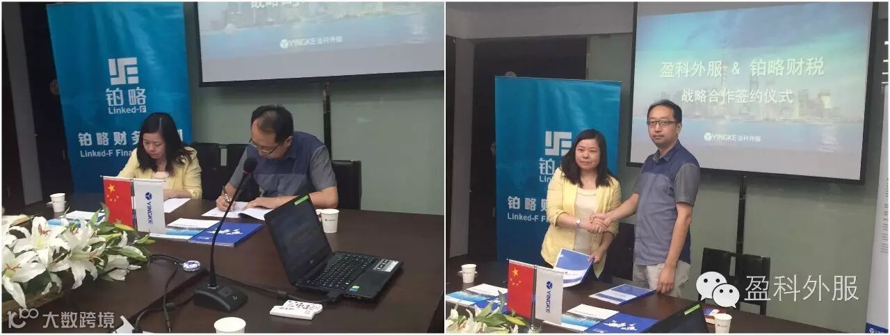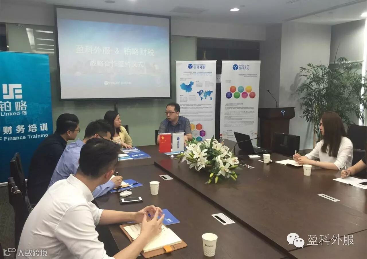 盈科外服与铂略财税正式签署战略合作协议。铂略财税副总裁王晖女士、销售&市场总监景俊淇先生、盈科外服副总裁及人力资源首席运营官张骥先生、涉外投资总监雷晓杰先生共同出席此次签约仪式。
