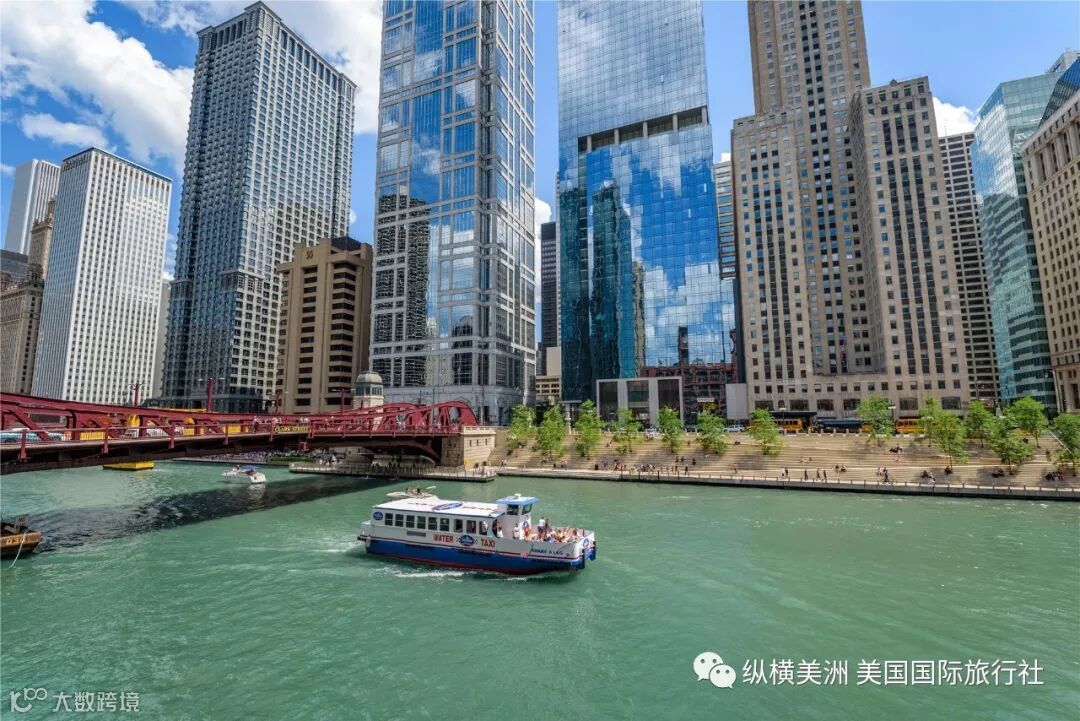 第二天继续游览芝加哥,发现更多经典景点:千禧公园、66号公路起点牌、芝加哥大学…… 逛得疲乏了,歇歇脚,乘坐芝加哥河观光游船,沿河观赏两岸的摩天大楼。值得一提的是,世界上第一座摩天大楼于1885年建于芝加哥。午餐不要错过芝加哥名声在外的经典美食——深盘披萨。