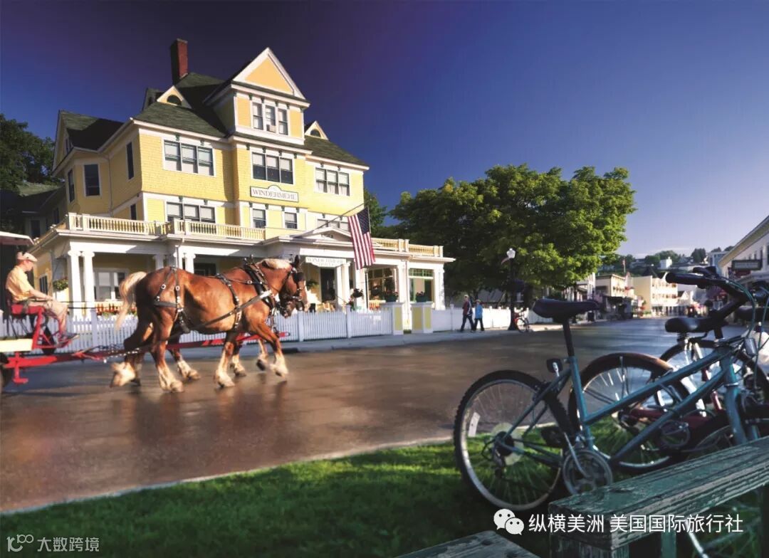 搭乘轮渡前往麦基诺岛,远眺麦基诺大桥。登上曾入选“世界十大最美小镇”之一的麦基诺岛,欣赏别具风格的建筑,体验麦基诺岛上经典马车游或自行车骑行。