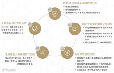 最后,借助计算机超强的信息处理能力、24小时持续发现全球多个市场的投资机会,快速进行程序化自动交易。