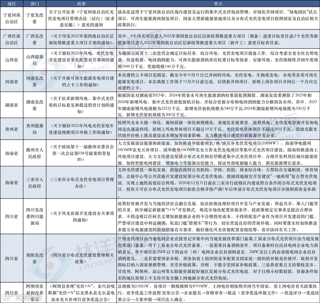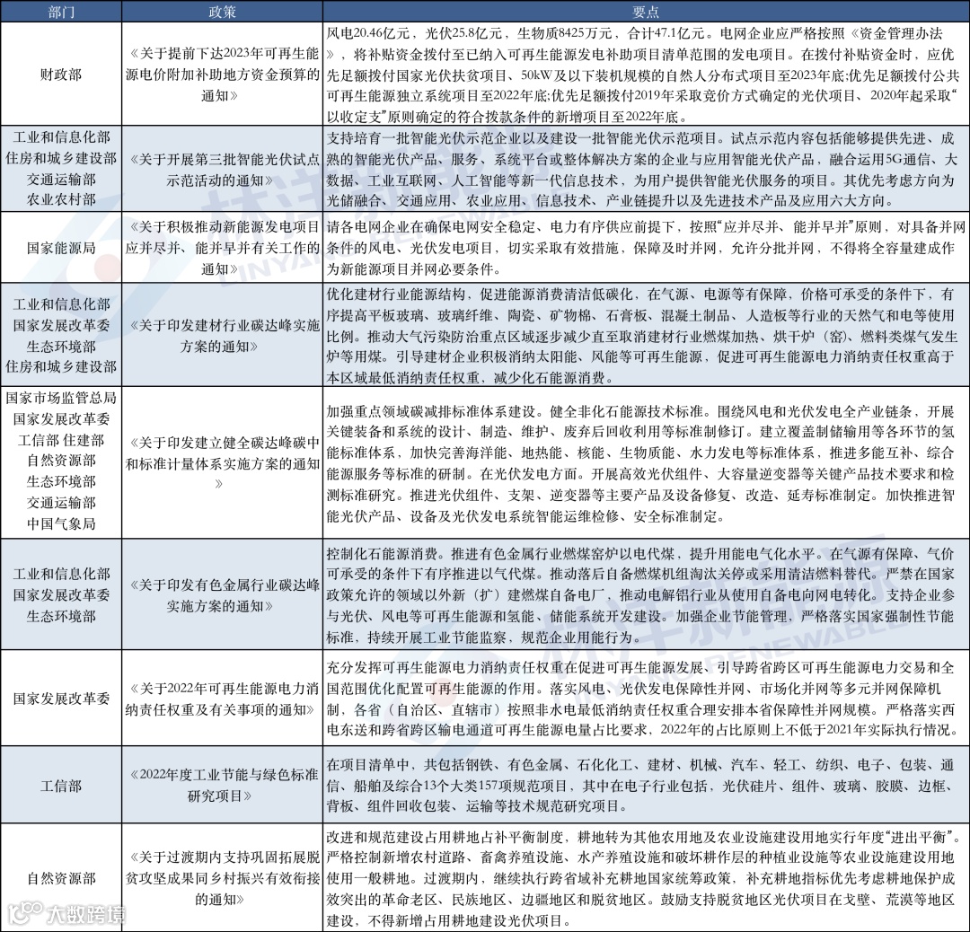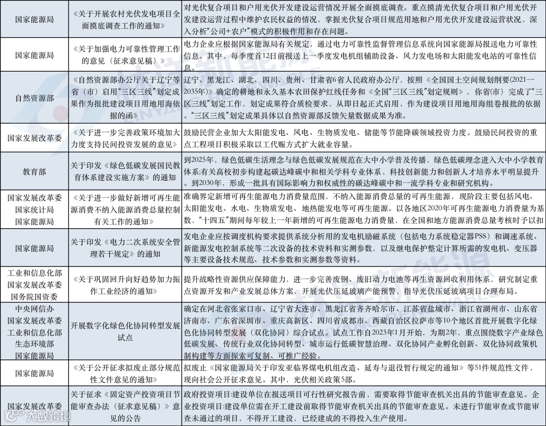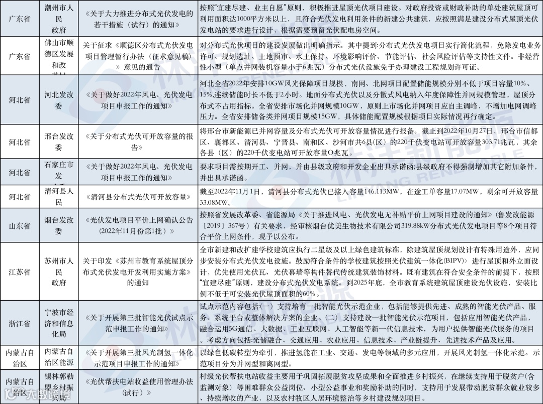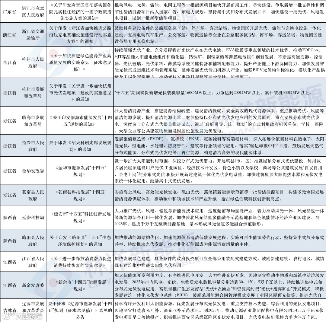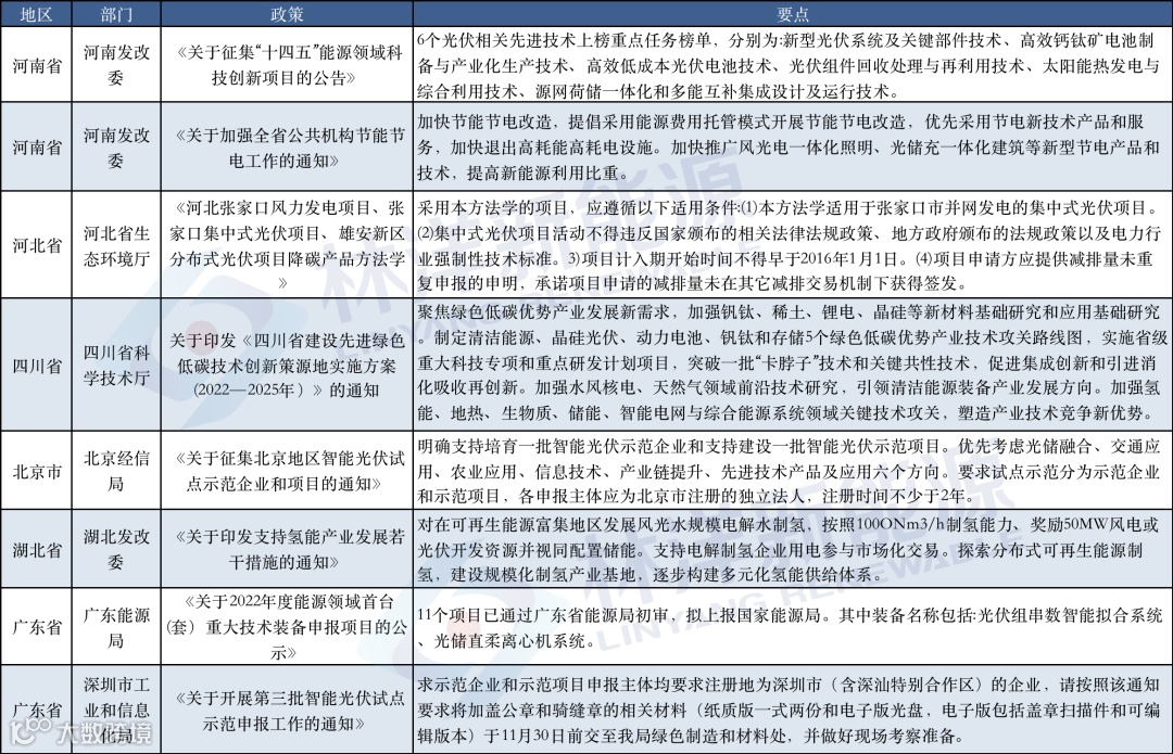 此外,国家层面还就光伏技术创新、光伏规范性文件、新能源发展规划等方面出台了相关政策。