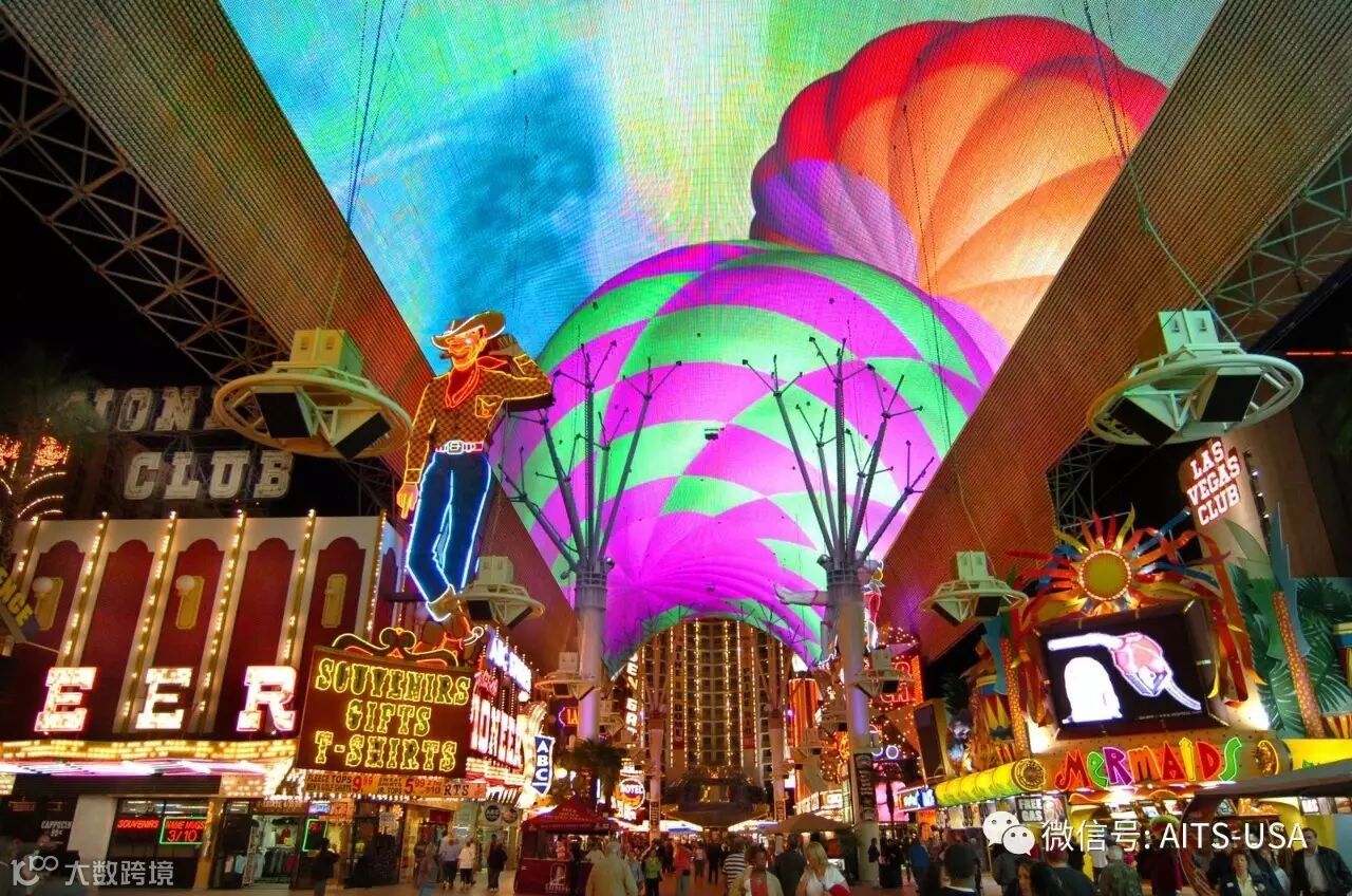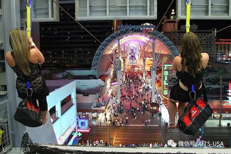 从一些最古老的赌场到像狂欢节一样的气氛,都是一场探险。街道上有跳霹雳舞的人,有演员扮演成猫王和基斯,还有人装扮成老派歌舞女郎。步行时头顶的灯光秀十分壮观。甚至还能够在一块巨大的LED屏幕下用索道从人潮攒动的费力蒙特大街上空飞跃而过!