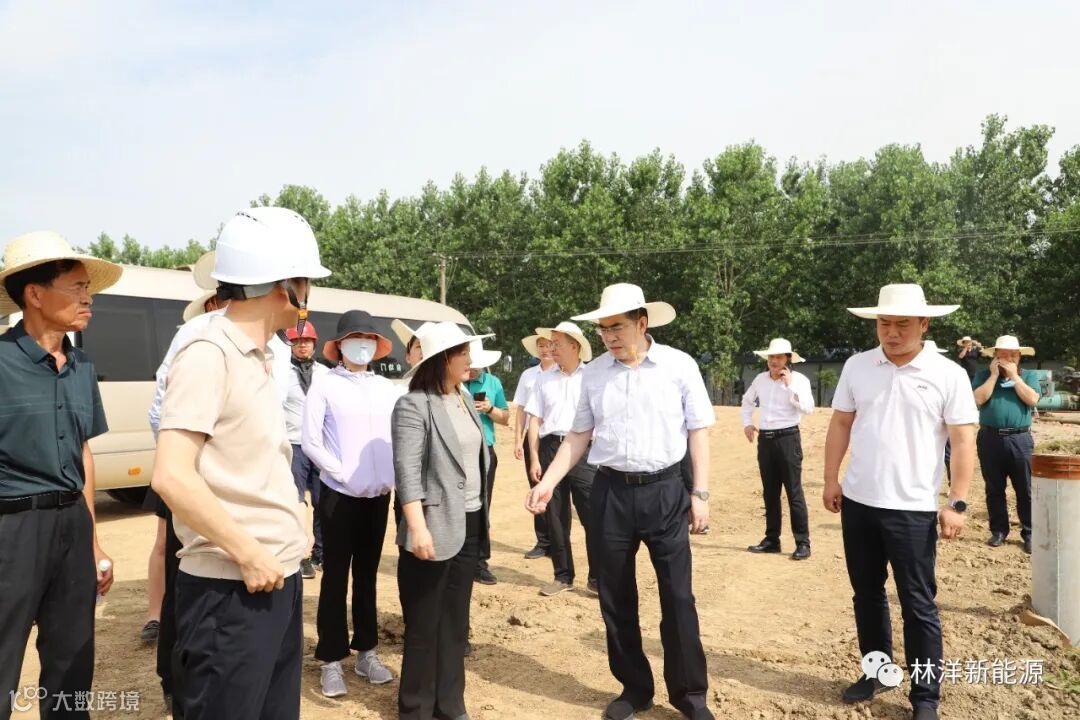 林洋仙桃胡场项目自开工以来,得到了政府部门和社会各界的高度关注和大力支持。2022年6月7日,仙桃市市委副书记、市政法委书记李少云、副市长雷荡等一行莅临现场调研。李少云副书记在听取了当地渔业养殖专家对项目渔光互补模式介绍后,对于林洋高效利用土地资源,实现上面光伏发电、下面渔业养殖的设计施工方案给予高度认可。