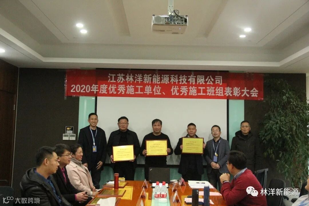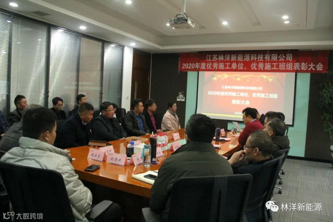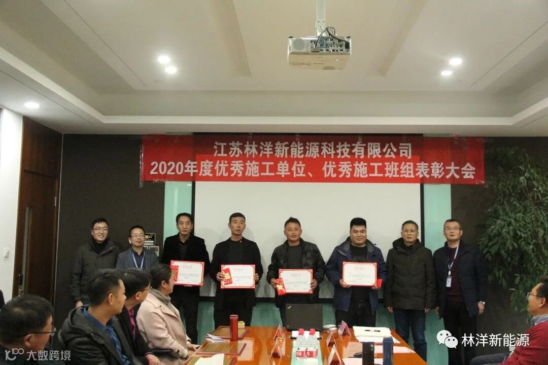 2020年12月18日下午,江苏林洋新能源科技有限公司2020年度优秀施工单位、优秀施工班组评选表彰大会隆重召开,林洋集团副总裁裴骏、林洋新能源总经理袁海容等公司领导及优秀施工单位、优秀施工班组代表、在建项目施工单位代表参加了此次会议,会议由林洋新能源总工程师梁继军主持。