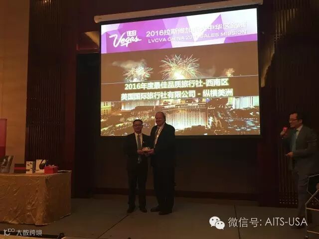当天晚宴,内华达州旅游局局长揭晓了西南区的2016年度最佳品质旅游社的奖项,美国国旅有幸荣获此殊荣。
