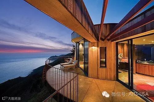 这里被誉为美国最美丽的酒店之一。酒店建造于大苏尔的悬崖边上,是一座有机建筑物,旁边还建有树屋酒店。只要站在窗边就能看到远处的海景或山景。海天相接的美景,看着就像是是梦里的景象。幸福点:白天可以享受悬崖顶上的温泉,晚上的时候可以陪着亲爱的她一起做瑜伽,或者手牵手来到观星台许下你们的爱情誓言。