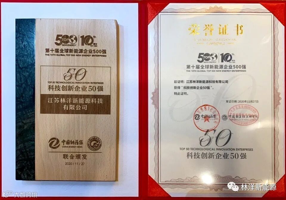 近日,由山西省能源局、《中国能源报》社联合主办的“2020能源转型论坛暨第十届全球新能源企业500强峰会”在山西太原举行,江苏林洋新能源科技有限公司(下称“林洋新能源”)成功入选峰会“2020全球新能源企业500强”和“新能源科技创新企业50强”两项榜单。