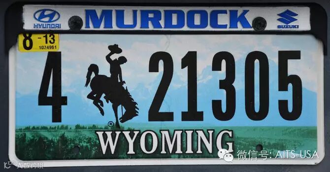 怀俄明州地域辽阔而人烟烯少,仍保留着早期游牧民族遗留下来的特征和西部精神,故有边疆州和牛仔州的昵称。车牌上都展示了一位跨在马背上技艺高超的牛仔。前面增加国旗标志,注明“Disabled Veteran”,伤残退伍军人。