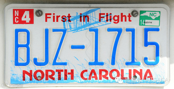 北卡罗来纳州曾目睹了一项轰动世界的大发明。1903年12月17日,莱特兄弟在大西洋沿岸基蒂霍克的海滩上进行了飞行试验,这是人类历史上第一次驾驶比空气重的飞行器飞离地面,它标志着伟大的航空时代来临。车牌上的”First in Flight “便是纪念这一发明。