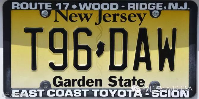 新泽西州的车牌上是该州的地图轮廓,以及别称“花园之州”。