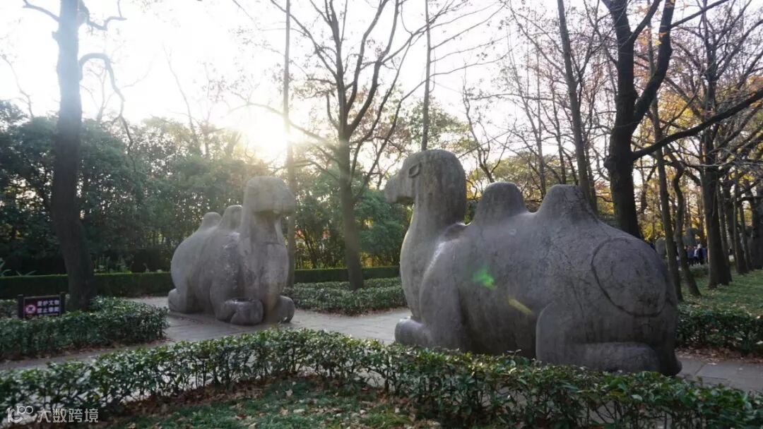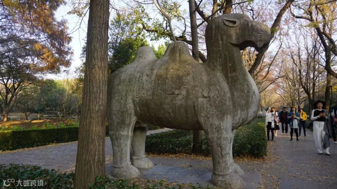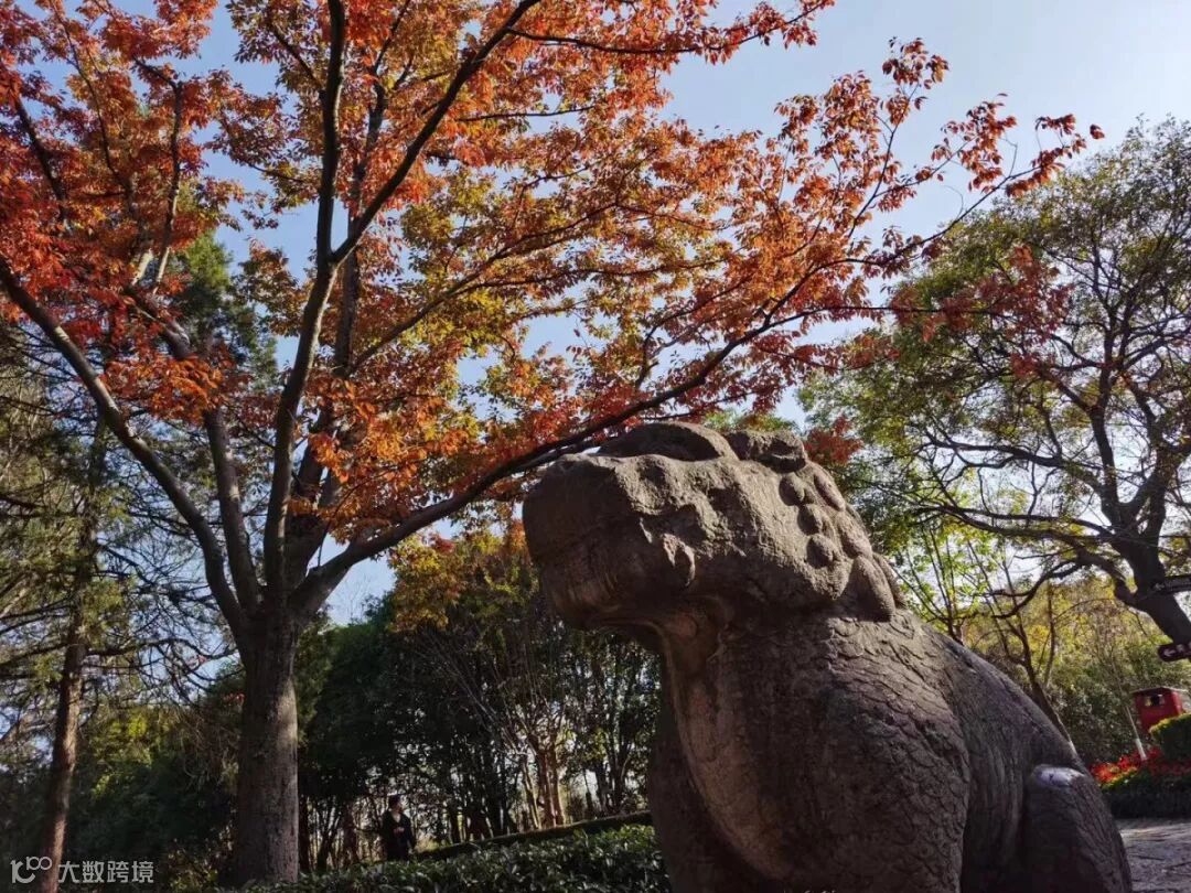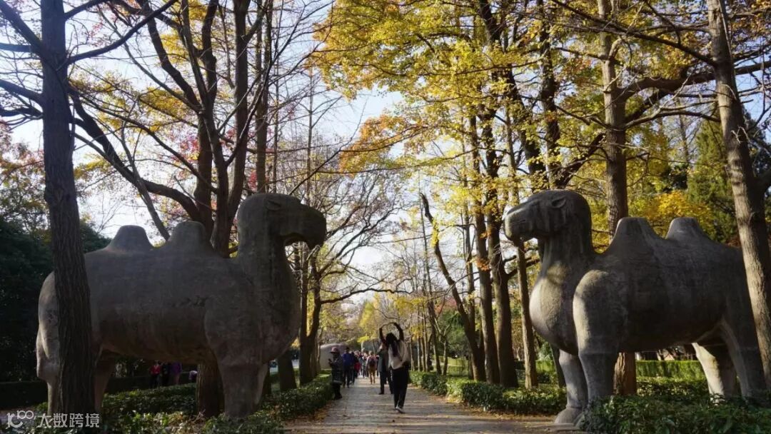 石象路是明孝陵神道的前段,长618米,沿途分布着狮子、獬豸、骆驼、大象、麒麟、马6种12对石兽,各两对分别呈蹲坐和站立的姿势相对而峙,守护于神道两旁。这些神兽都是由整块石头切割雕琢而成,线条多是圆润的,风格粗犷,气势宏大,既标志着帝陵的崇高华美,也是守护帝陵的象征。经历了600多年沧桑的石象路上,橙黄的乌桕、紫红的榉树、金黄的银杏,还有常青的圆柏,红橙黄绿相间融合,肃穆的神道换上绚烂秋装,大自然描绘而成的秋日画卷向人们层层展开,无愧被誉为“南京最美600米”。