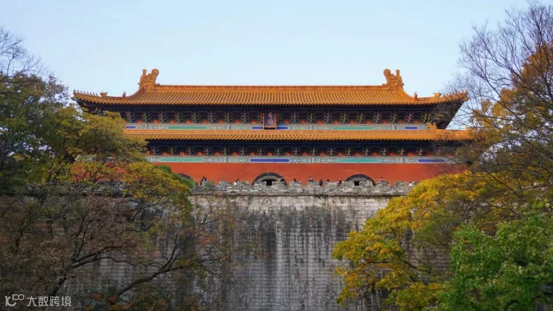 穿过神道就是棂星门和御河桥,御河桥的桥基和河两边的石头都是明代的原物。越过这里就可以看到明孝陵的主建筑了,黄瓦红墙,文武方门四个大字瞬间让人肃然起敬。