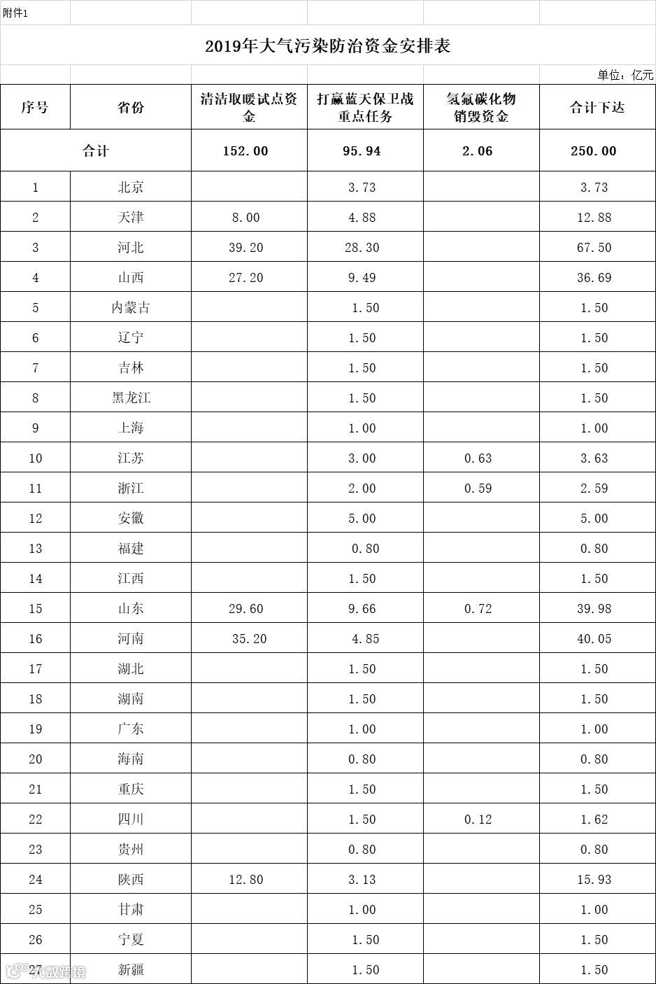 为促进大气质量改善,贯彻落实《中共中央国.务院关于全面加强生态环境保护坚决打好污染防治攻坚战的意见》确定的工作内容,现下达你省(自治区、直辖市)2019年大气污染防治资金,用于支持开展大气污染防治方面相关工作,并就有关事项通知如下: