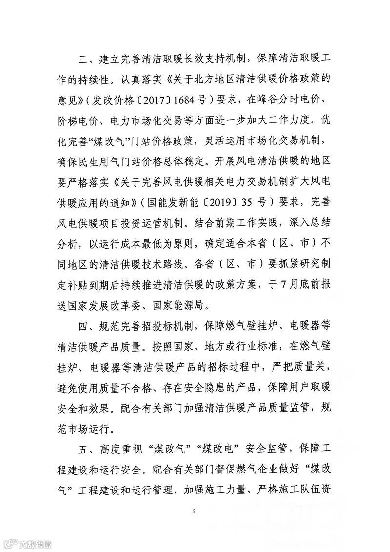 近日,国家能源局发布了征求《关于解决“煤改气”“煤改电”等清洁供暖推进过程中有关问题的通知》的意见函。随后,财政部发布了《关于下达2019年度大气污染防治资金预算的通知》,共计250亿元,其中2019年北方地区冬季清洁取暖试点资金152亿元。