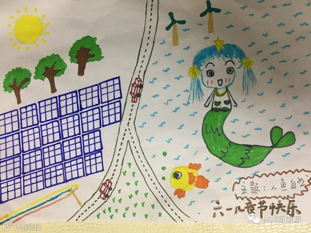 介绍:因为我的爸爸是一名光伏人,所以我认为我眼中的世界应该有很多光伏板,板下还有美人鱼,周围还有绿树、有小草……它们都和谐的生活在一起