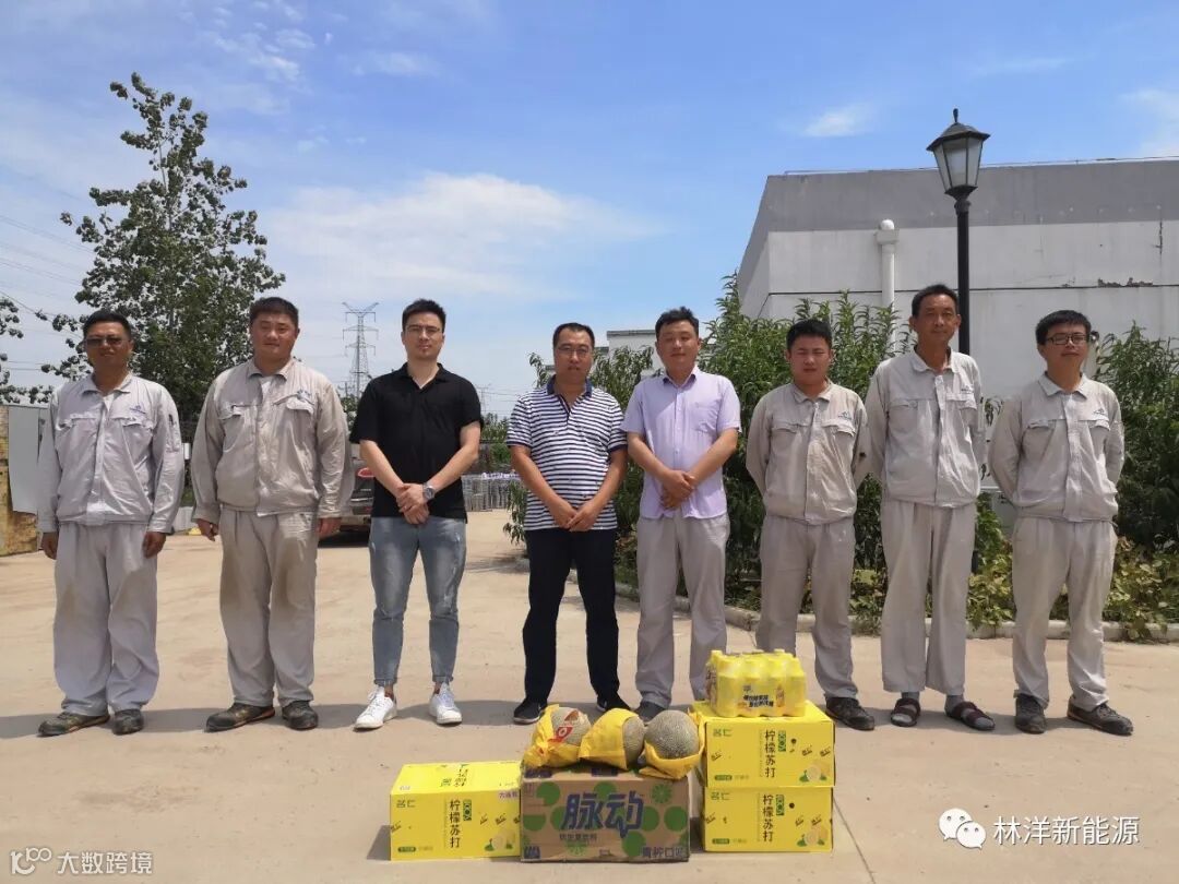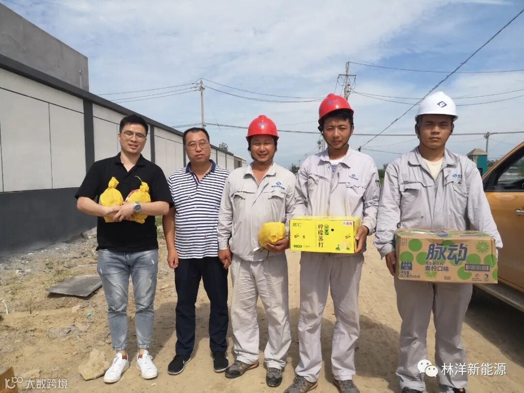 连日的高温不仅是对一线伙伴们在体力、精力各方面的极大考验,更牵动着林洋运维管理层领导们的心。为了给奋战在一线的兄弟们送去炎炎夏日里的丝丝清凉和公司的真挚关怀,感谢他们的辛勤付出,江苏林洋光伏运维有限公司成立慰问小组,总经理樊嵘、副总经理王冰、符克强、陆建荣等领导分别带队前往江苏、安徽、山东区域电站,为他们送去了防暑降温用品,让员工们感受到来自林洋大家庭的温暖。