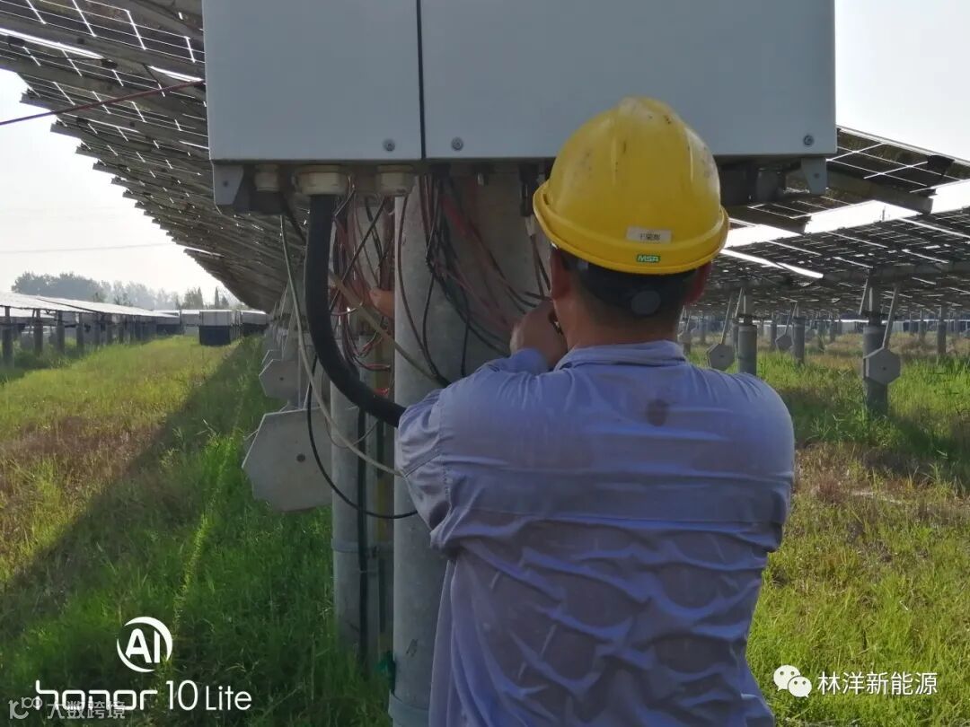 根据运维人员介绍,现场可通过公司自主设计开发的“林洋光伏智慧云平台”对设备温度进行实时监控,利用“云平台远程监控+现场智能巡检+红外无人机巡检”三维巡检模式,加大隐患排查治理力度,防止出现过温现象。此外夏季草势生长旺盛,都能到及时清理,避免杂草对发电及安全造成影响。虽是高温天气,但在现场工作的兄弟们依然身着长袖长裤的工作服,头戴厚实的安全帽一丝不苟地进行着巡检、除草、清理组件等运维工作。