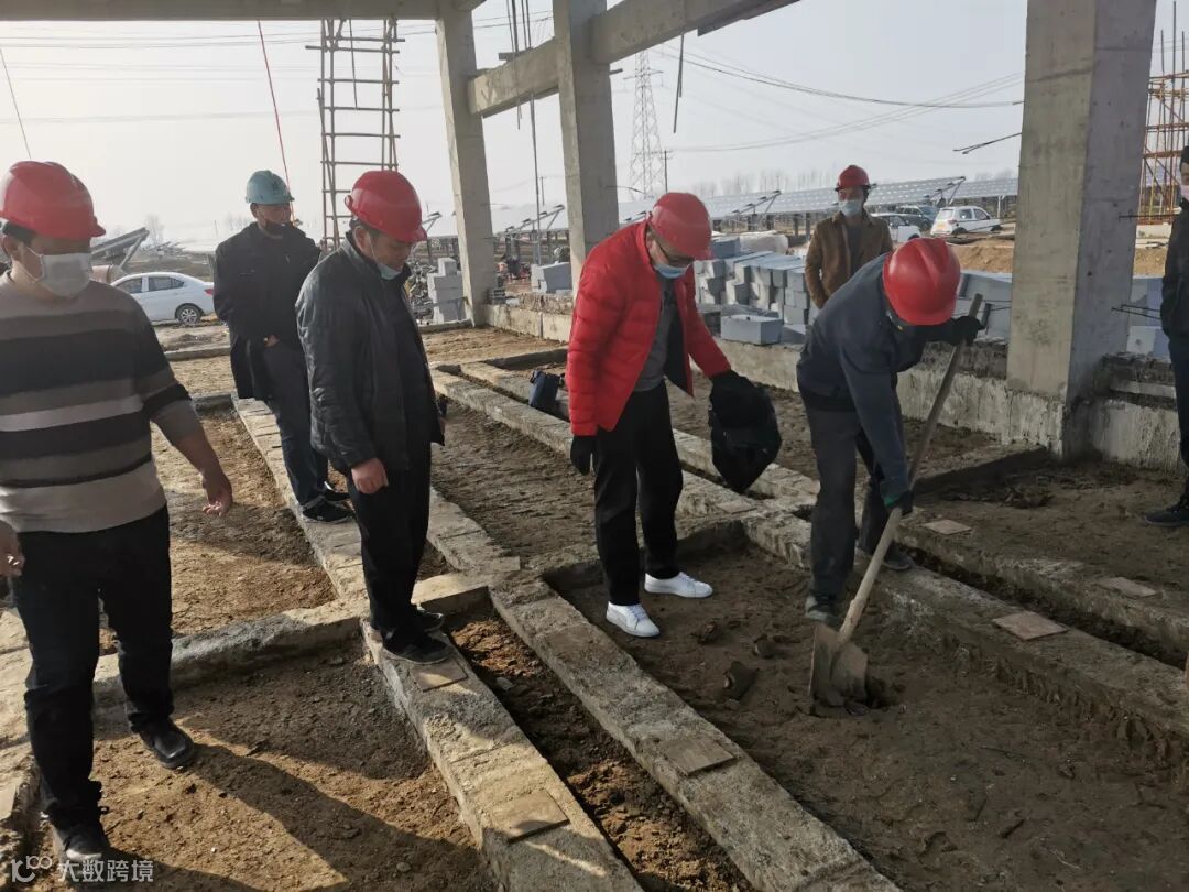 项目复工前,中广核新能源江苏分公司总经理石有文、副总经理徐瑞玲等领导在林洋新能源总工程师梁继军、项目经理牛军及庞洪杰等人陪同下前往泗洪光伏领跑奖励激励基地进行疫情防控指导工作。疫情初期,林洋在集团层面成立疫情领导小组,在当地政府疫情指挥部的政策指导下、在集团管控疫情工作要求下,制订详细复工复产方案和应急预案,落实疫情防控主体责任和各项管理措施,助力项目按下复工复产的“安全加速键”,确保项目复工生产、工人生活平稳有序。