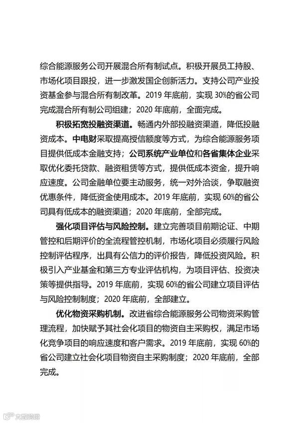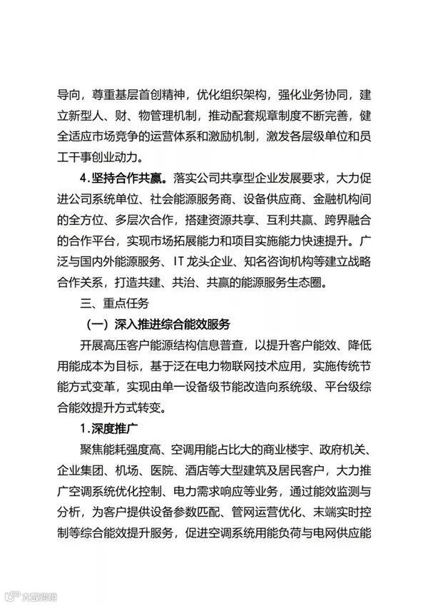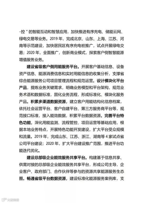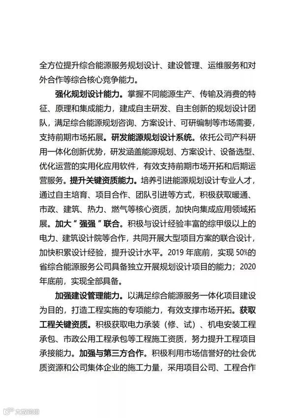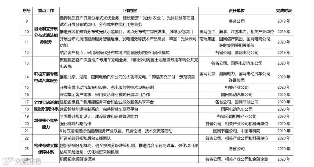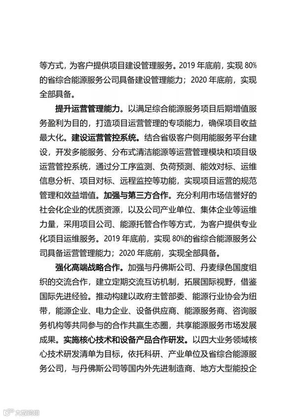 国家电网公司自2017年正式进入综合能源服务领域以来,目前已经成立了26家省级综合能源服务公司。近日,国家电网正式印发了《国家电网有限公司关于推进综合能源服务业务发展2019—2020年行动计划》,重点布局综合能效服务、多能供应服务、分布式能源、专属电动汽车服务等四大业务;2019年、2020年分别实现营收95亿元、190亿元。