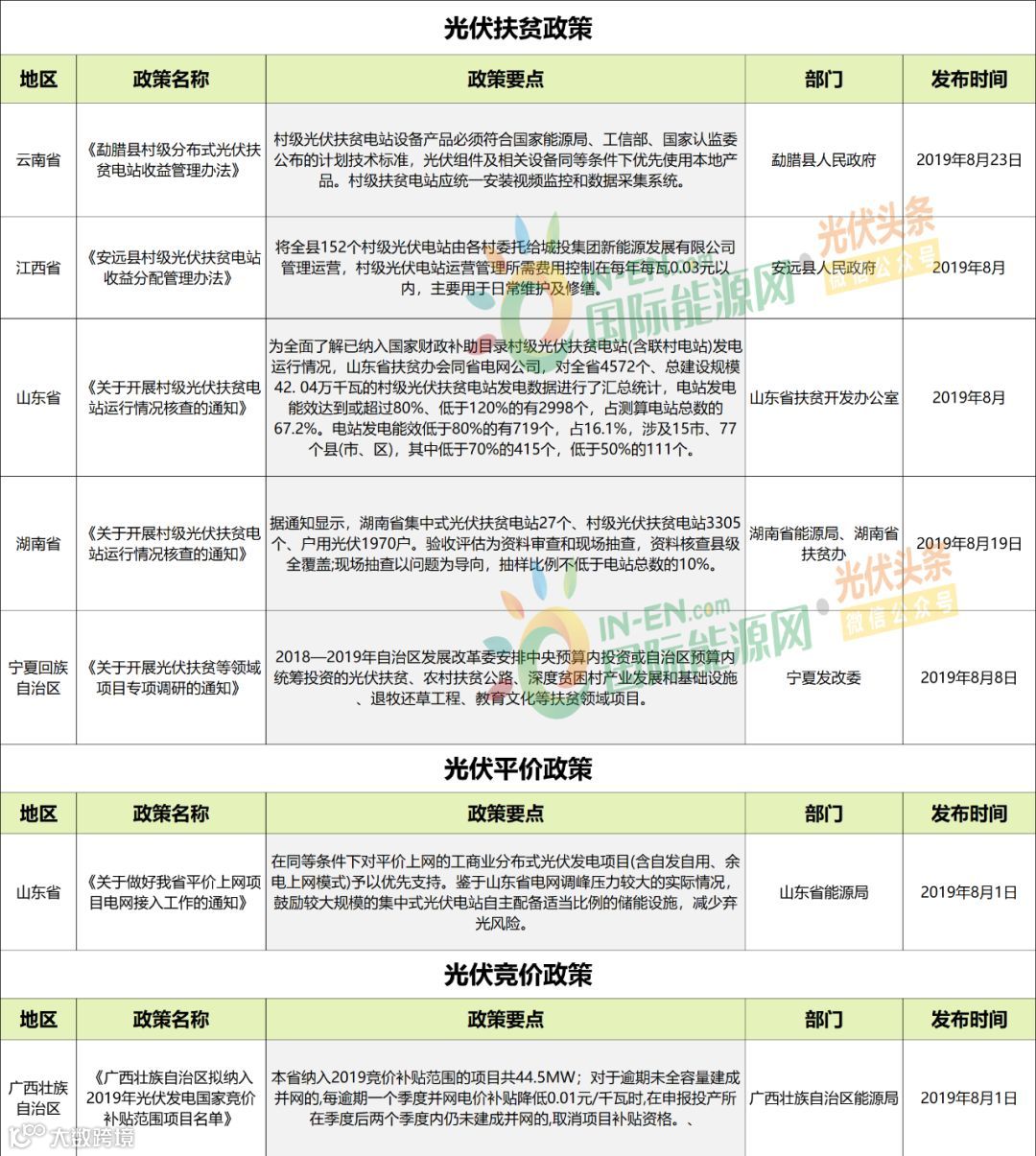 8月份,究竟哪些国家与地方政策备受关注,哪些补贴、分布式、电价、扶贫、规划政策的新变化值得重视,相关光伏的利好政策还有什么?
