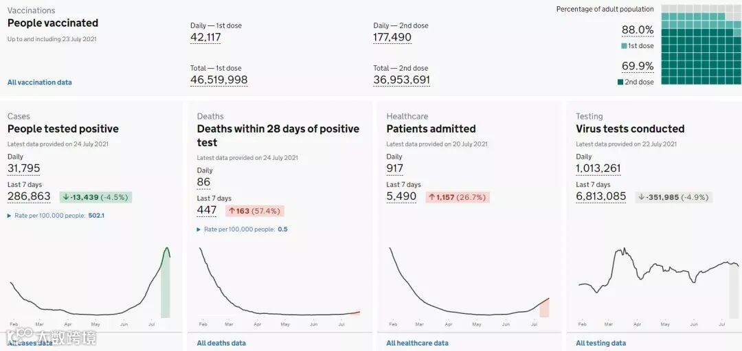 值得注意的是,对比英国7月15日的确诊数字为48,553例,一周之后的确诊数字降低了近1万例,不得不说这是一个好的迹象。