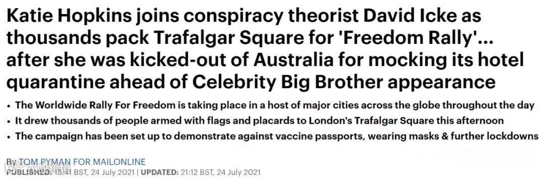 据媒体报道英国时间7月24日,一项名为The Worldwide Rally For Freedom(全球争取自由集会)的游行在包括伦敦在内的全球多个主要城市举行。
