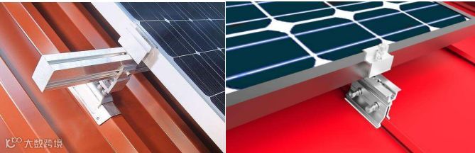 组件采用彩钢瓦平面敷设安装方式。通过夹具或者穿孔并作防水的方式,把光伏导轨支架固定在屋面上,再把组件固定在支架上完成安装,安装方式如下图所示。