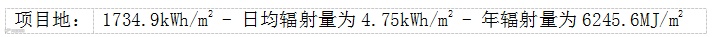 由太阳能资源分布图可知,该场区太阳能资源非常丰富。同时,通过meteonorm软件中基础数据库推算,得出对应地区年均太阳辐射约为: