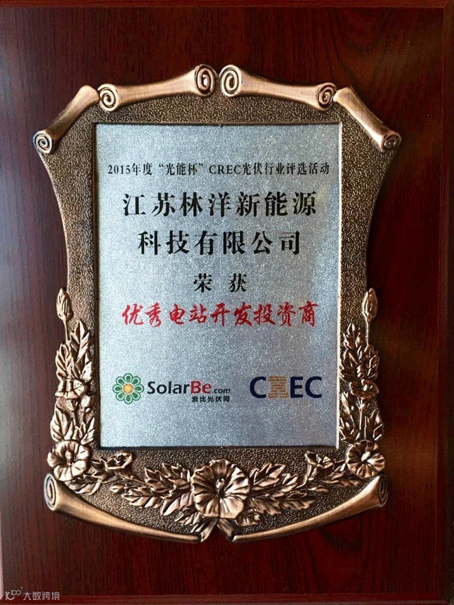 图:林洋新能源连续四年荣获“年度光伏投资企业”奖项