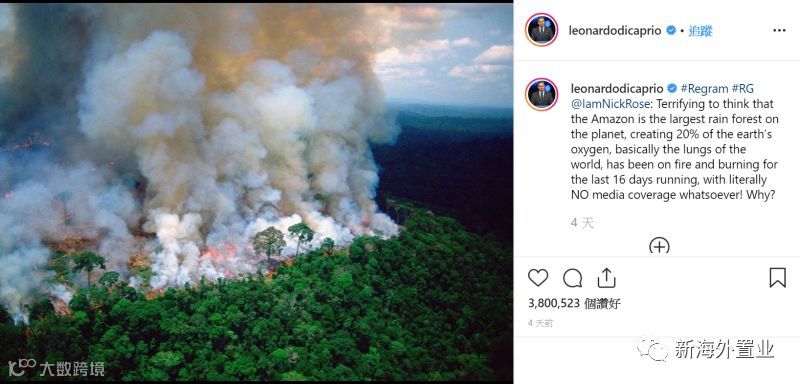 根据《 CNN 》报导,亚马逊雨林是世界上最大的雨林,密集的原始植被为全球贡献高达 20% 的氧气,被认为是减缓全球暖化的要角,有「地球之肺」的美称。然而,今年亚马逊雨林火灾大爆发,是 2013 年以来延烧最迅速的一次。巴西国家太空研究院( National Institute for Space Research )更指出,亚马逊雨林正以每分钟 1.5 个足球场大小的速度被烧毁。
