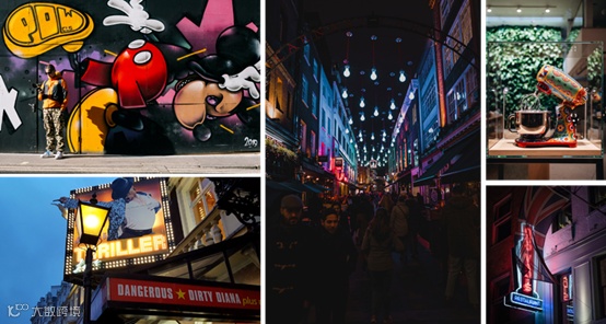 流行文化中心SOHO则更像是西伦敦文化气质的另一面,遍处可见时髦小众的独立精品店,创意融合餐厅,精彩暧昧的夜生活,和年轻不羁的新潮艺术。