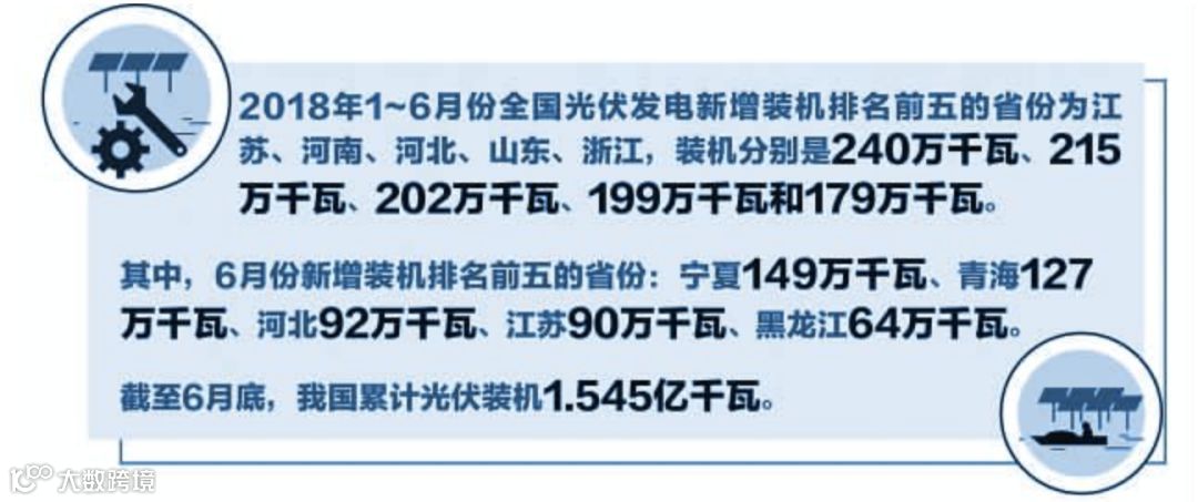 上半年光伏发电新增装机2430万千瓦,其中,光伏电站1206万千瓦,同比减少30%;分布式光伏发电新增1224万千瓦,同比增长72%。到6月底,全国光伏发电装机达到15451万千瓦,其中,光伏电站11260万千瓦,分布式光伏发电4190万千瓦。