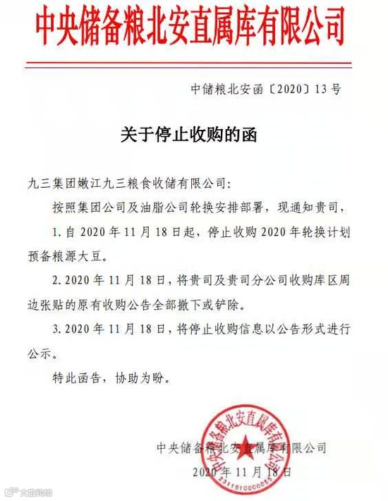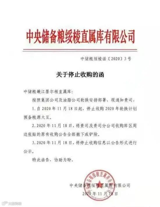 )市场有不少主体靠囤积致了富,加上当前国内粮油市场资金充足、资本介入较为积极,这让原本供需平衡的大豆与玉米市场出现了新变化,导致价格波动较大,当然这和新冠肺炎疫情冲击也有很大关系,但在疫情得到较好控制以后,国内大豆市场流通等已恢复正常,而随着非转基因大豆进口的理顺,再加上年底来临后产区豆农售豆兑现,市场供应趋增的概率还是很大的,未来高价囤豆将面临一定风险。也有市场人士认为,中储粮大豆收购价格是远低于市场价格的,如多数中储粮下属粮库大豆收购价格为2.17—2.2元/斤,当前东北地区大豆毛粮价格基本在2.6元/斤,因此停收也许对市场是没有多大实际影响的。