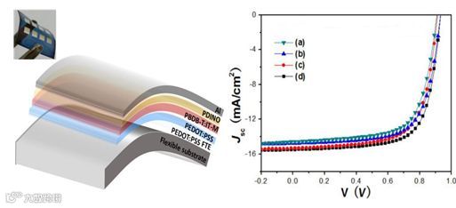 柔性有机太阳能电池的结构示意图和光伏特性曲线