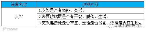 支架问题一般不会影响电站发电,但任其发展可能导致组件掉落,方阵倒塌,严重的发生安全事故。 支架巡视时主要检查支架是否有变形、生锈,连接是否可靠等详细如表2。