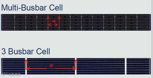 如图6,在传统三主栅布局中,主栅之间的子栅长度以及相关电阻损失限制了子栅宽度的进一步减小,并因此决定了获得有效填充因子所需的银消耗量。而多主栅设计则缩短了子栅长度,从而能充分挖掘现代金属化技术的潜能,例如细线网印以及结合了光诱导镀的喷墨种子层印刷技术。多主栅结构的主要优势在于高填充因子,以及大幅降低的Ag消耗量以及较低的活性区域遮荫面积。