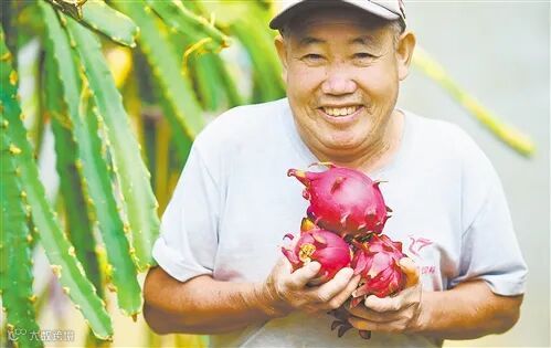 导读:日前,河北沧州市青县前吕召村刚脱贫的陈树义在扶贫大棚里采摘火龙果。