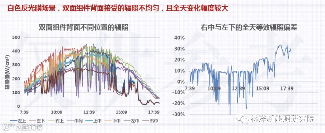 使用双面组件的光伏发电项目,除了早晚时间段上下排光伏组件因为阵列遮挡导致电性能参数存在差异之外,双面组件背面接收到的反射和散射辐射量也不同,因光伏组件参数差异导致的组件串之间的失配损耗将更为明显,因此,使用双面光伏组件的项目应优先采用一字型接线。当光伏阵列采用了比规范要求更大的间距且高度较高时,环境反射辐照差异及阵列阴影影响都将减弱,此时可以考虑采用C字型接线。同时严格执行具有多路MPPT功能的逆变器的规则接线方案。经电站实证,这些优化措施可提升系统发电量2%。